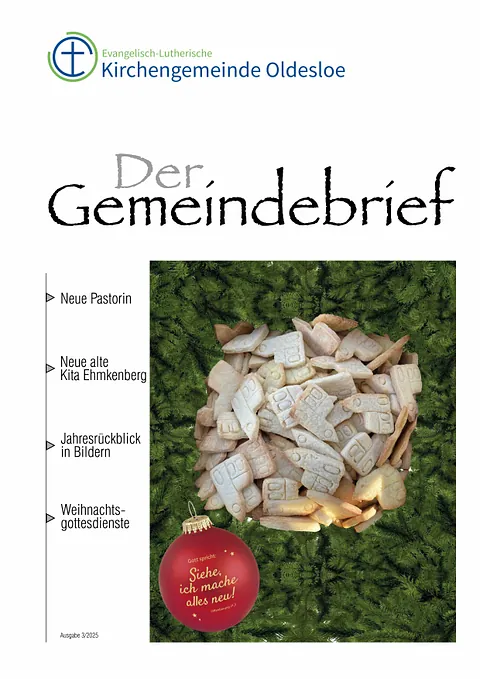 Unser Gemeindebrief erscheint drei Mal jährlich (Frühjahr, Herbst, Weihnachten) und berichtet über die Vielfalt des Gemeindelebens. Zusätzlich gibt es Sonderausgaben. Wenn Sie Fragen oder Anregungen zum Gemeindebrief haben, erreichen Sie die Redaktion unter gemeindebrief@kirche-oldesloe.de